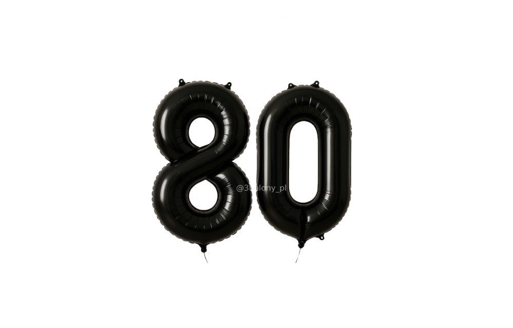 • 1 x balon foliowy w kształcie cyfry 8 i 0, rozmiar ok. 100 cm, kolor czarny z helem + wstążki ~2 m.