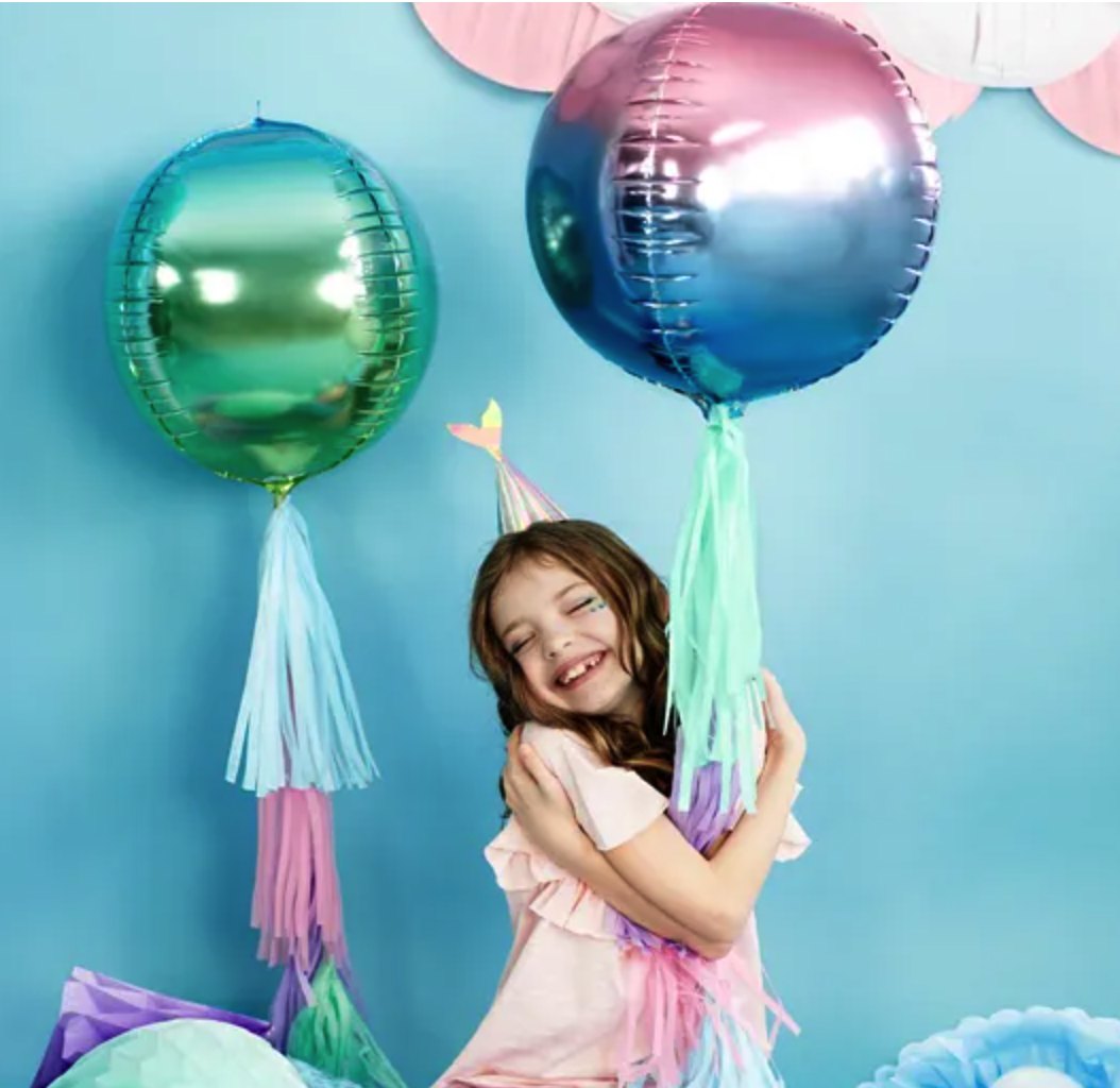 • 1 x balon foliowy Kula ombre, kolor fioletowo-niebieski, rozmiar 35 cm z helem + wstążka ~1,5 m.