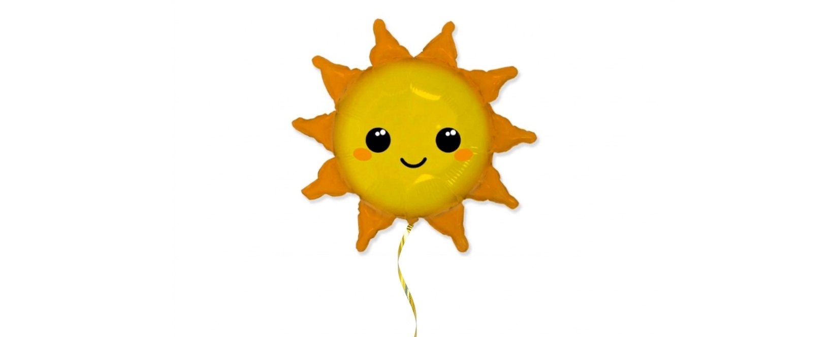 • 1 x balon foliowy słońce, rozmiar 73 cm lub 29 cali z helem + wstążka ~1,5 m.