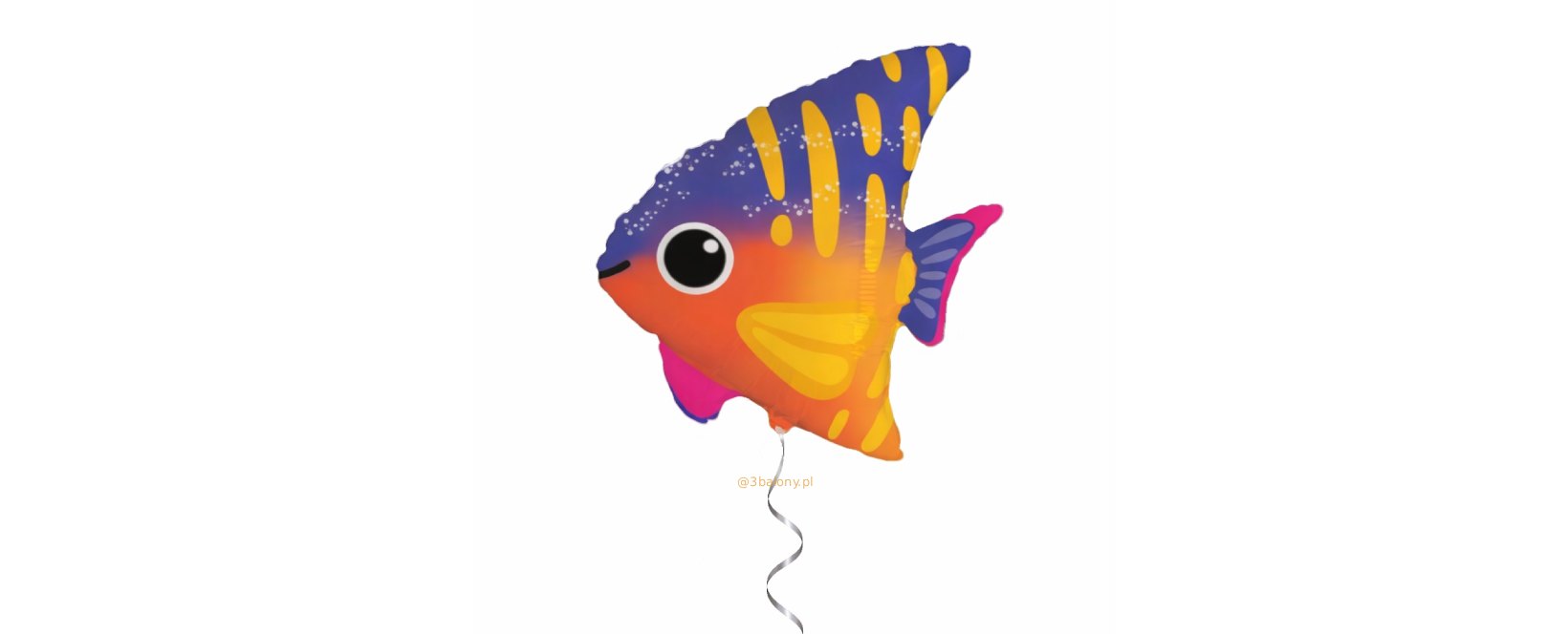 • 1 x balon foliowy uśmiechnięta rybka, rozmiar ~60 cm + wstążka ~1,5 m.