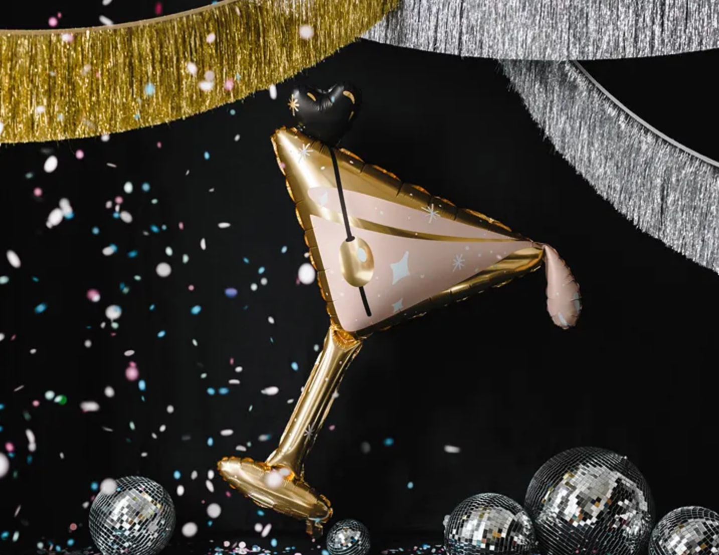 • 1 x balon foliowy kieliszek, rozmiar 126 cm  + wstążka ~1,5 m.