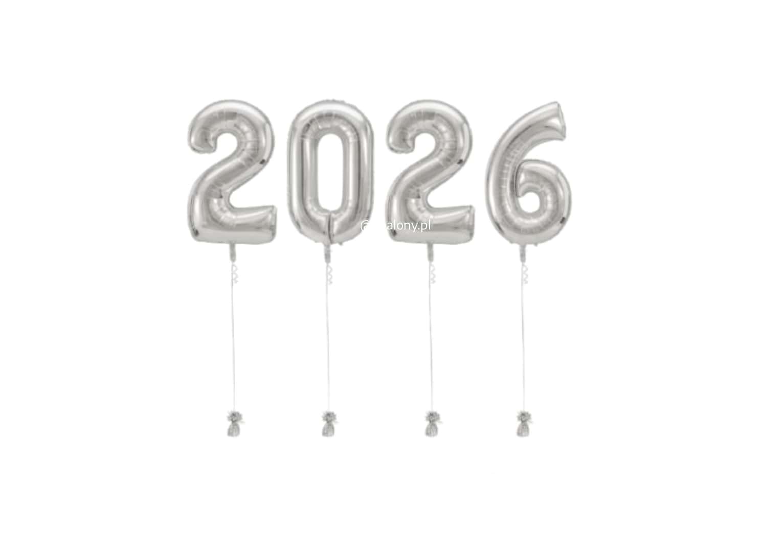 • 1 x balon foliowy cyfra „2”, „0”, „2”, „6”, kolor srebrny, rozmiar cyfry w wysokości ~100 cm z helem + wstążki.