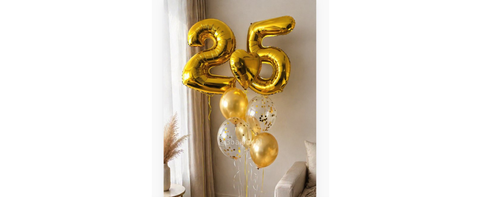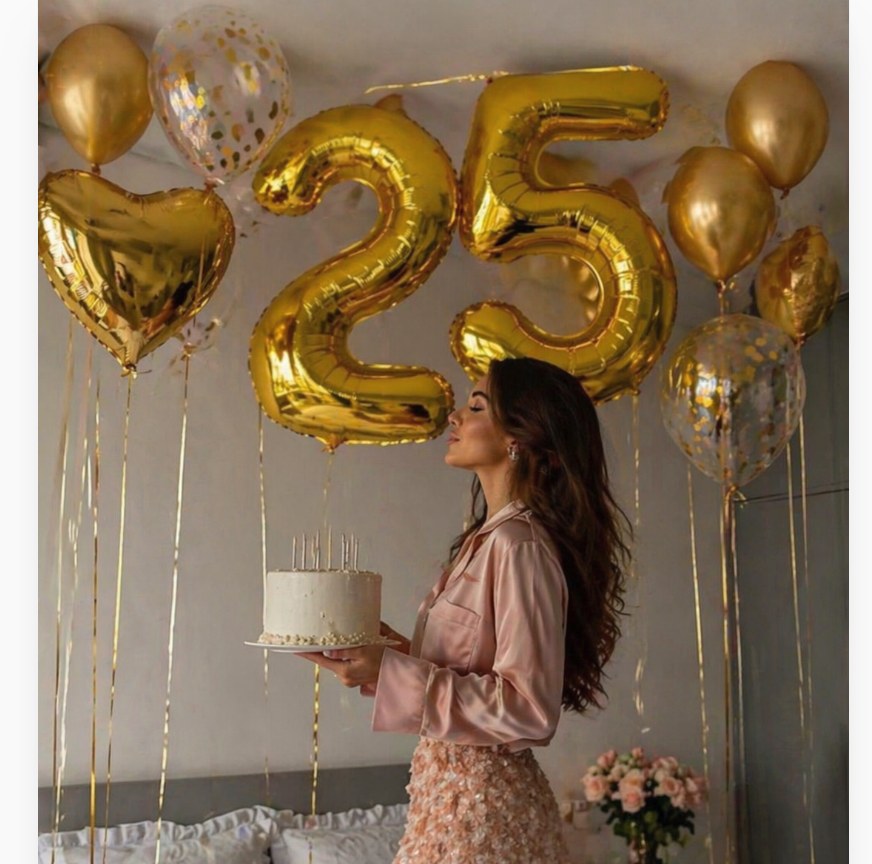 Podkreśl magię ważnych chwil dzięki eleganckiemu, złotemu zestawowi balonowemu z cyfrą 25. To efektowna dekoracja, która natychmiast przyciąga wzrok i tworzy niezapomnianą atmosferę – idealna na jubileusz, urodziny czy rocznicę.
